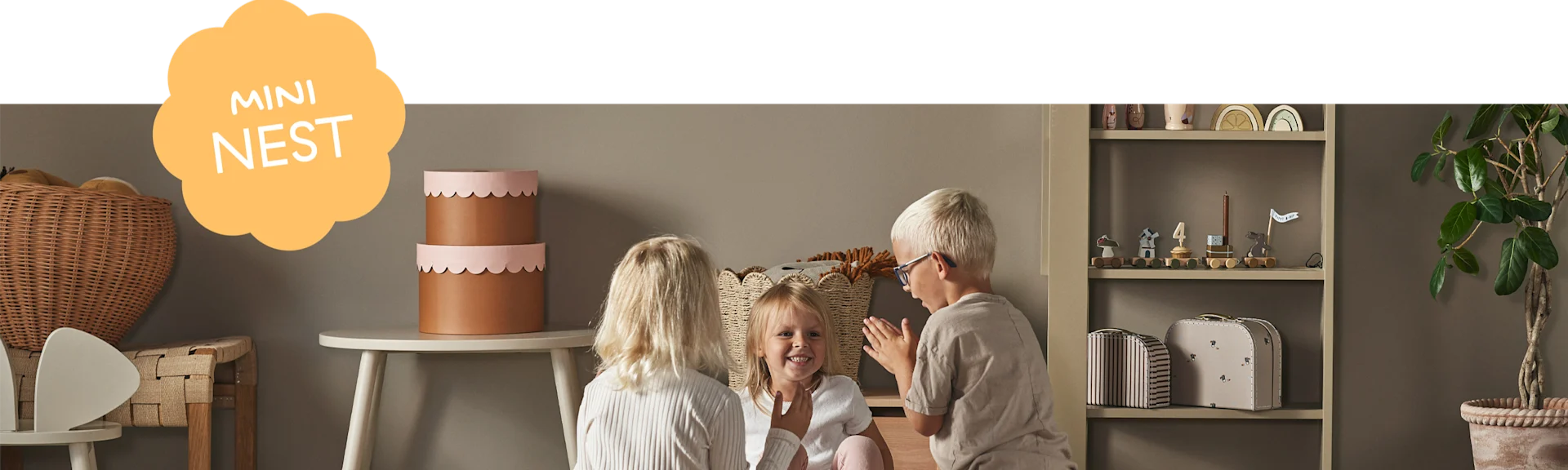Małe gniazdka do aktywności i zabawy; wszystko w pokoju jest starannie dobrane, a każdy element spełnia swoją funkcję. W przeciwnym razie kreatywność znajduje funkcję. Półka staje się koniem, którego trzeba nakarmić, pudełko staje się szybkim samochodem dla pluszowej zabawki, a prześcieradło staje się magiczną chatką.