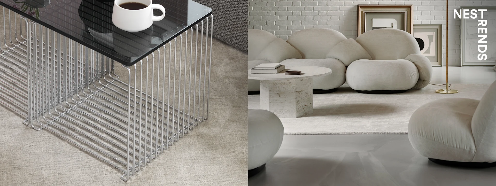 Jeśli Twoim trendem jest Soft Power, powinieneś zainwestować w detale wnętrza o miękkich zaokrąglonych i organicznych kształtach, które współgrają z prostymi liniami. Paleta materiałów powinna być prosta, z głównym naciskiem na naturalne tekstury. Gładkie powierzchnie, takie jak lastryko, marmur i ciemne bejcowane drewno, sąsiadują z błyszczącym chromem, ceramicznymi detalami i miękką buklą.