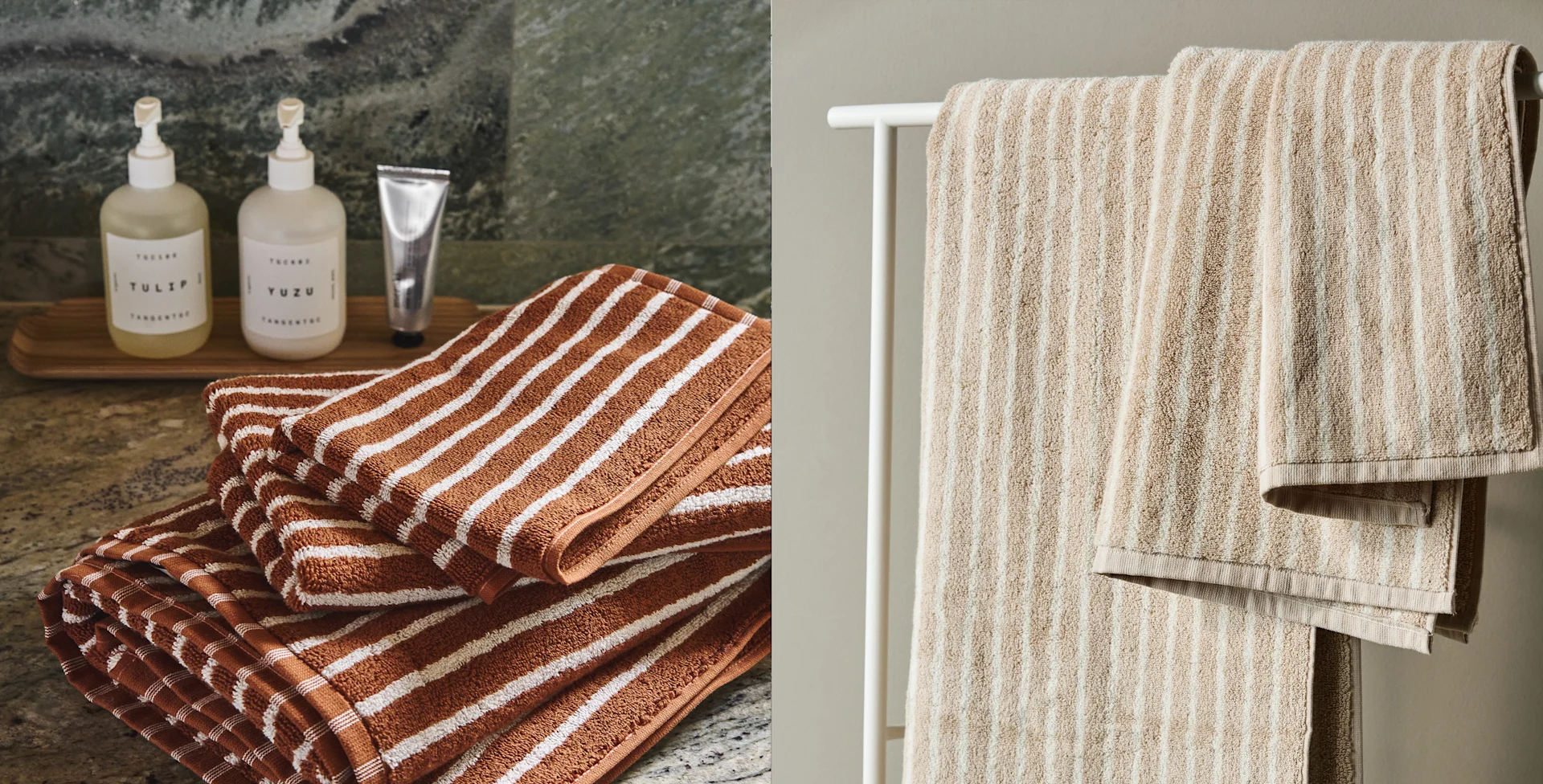 Tutaj znajdziesz szeroki wybór wysokiej jakości tekstyliów do łazienki, takich jak ręczniki do rąk oraz ręczniki kąpielowe od renomowanych skandynawskich marek, zaprojektowanych, aby stworzyć przytulną, komfortową atmosferę w łazience.