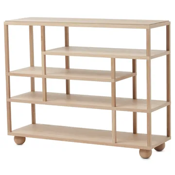 Półka Show od smalandzkiej A2 ma przewiewny i otwarty design z przesuniętymi półkami na kilku poziomach. Półka została zaprojektowana przez Sarę Larsson i stoi stabilnie na czterech kulistych nogach. Użyj jej jako stylowego dzielnika pokoju lub jako klasycznej półki na książki obok ściany. Połącz ją z dopasowanym podstawką na książki, aby uzyskać jeszcze bardziej elegancki wygląd.