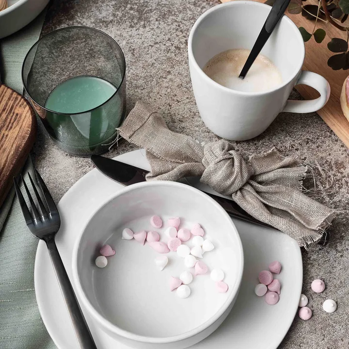 Kubek z uchem Raw 35 cl od Aida to ręcznie wykonany kubek z kamionki zaprojektowany przez Christiane Schaumburg-Müller. Zainspirowany siłą tytanu, posiada odporną na zarysowania powłokę RAW, która daje głębokie, zróżnicowane wykończenie, dzięki czemu każdy kubek jest wyjątkowy. Odzwierciedla prostą, nordycką estetykę i sprawdza się równie dobrze na stole śniadaniowym, co podczas spokojnej chwili przy kawie. Solidny w odbiorze, a jednocześnie łatwy w użyciu dzięki praktycznemu uchwytowi — codzienny ulubieniec oferujący charakter i autentyczne rzemieślnicze wykończenie.