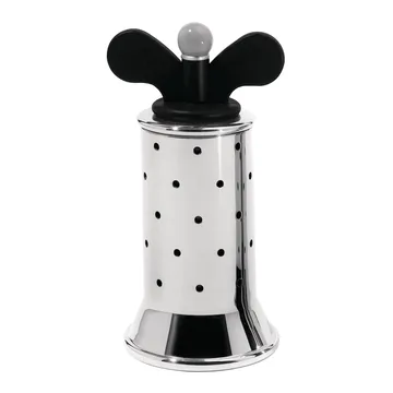 Unikalny i zabawny młynek do pieprzu Alessi od włoskiej firmy Alessi został zaprojektowany przez amerykańskiego projektanta Micheala Gravesa. Młynek do pieprzu Alessi, podobnie jak wiele innych produktów tej marki, wyróżnia się osobliwym i unikalnym designem, który jest łatwo rozpoznawalny, wykonany z polerowanej na wysoki połysk stali nierdzewnej z kolorową górą. Młynek do pieprzu Alessi będzie użytecznym elementem w kuchni, dlaczego nie dopasować go do innych wspaniałych akcesoriów kuchennych od Alessi? Wybierz spośród różnych kolorów.