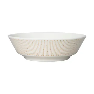 Miska Mainio Sarastus Ø17 cm to misa do serwowania wykonana z porcelany glazurowanej ozdobiona brzegiem w formie organicznych pasków i małych kropek. Elementy serii Mainio Sarastus są zaprojektowane tak, aby można je było układać w stosy i łączyć ze sobą. Na przykład, możesz użyć talerzy jako pokrywek na miski do przechowywania żywności w lodówce i zamrażarce. Wszystkie elementy można również używać w piekarniku i kuchence mikrofalowej, a także podczas serwowania zarówno na co dzień, jak i na specjalne okazje.