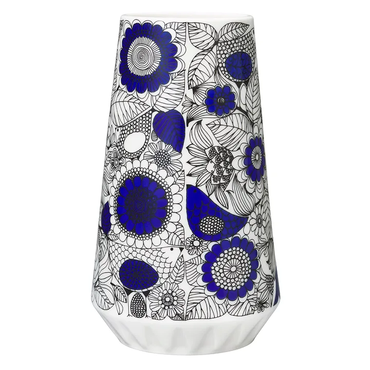 Palargeaali wazon z Arabii, dzięki swojemu pięknemu wzorowi, będzie wspaniałym elementem dekoracyjnym na stole. Wzór został stworzony pod koniec lat 60. przez Esteri Tomulę, która czerpała inspirację między innymi z pastwisk, łąk i ptaków, z elementami postaci ludzkich. Palargeaali wazon to element wystroju, który sprawia radość – zarówno kiedy stoi sam, jak i kiedy jest wypełniony pięknym bukietem kwiatów!