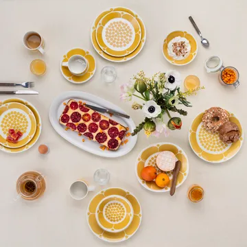 Sunnuntai filiżanka od Arabia została zaprojektowana przez Birgera Kaipianena w 1971 roku. Ta słoneczno-żółta filiżanka z pięknym wzorem roztacza pozytywną aurę i jest wspaniałym kolorowym akcentem na stole śniadaniowym lub tacy do kawy. Projekt jest tak samo aktualny i nowoczesny dziś, jak był wtedy. Połącz z talerzykiem z tej samej serii.