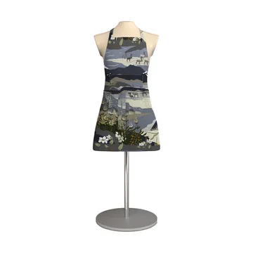 Fartuch Fjällvandring od Arvidssons textil jest wykonany z bawełny i posiada praktyczną kieszeń na piersi. Wzór zaprojektowała Louise Videlyck i jest inspirowany norrländskimi górami. Fartuch można używać zarówno w kuchni, jak i w ogrodzie; wiąże się go wygodnie wokół talii.