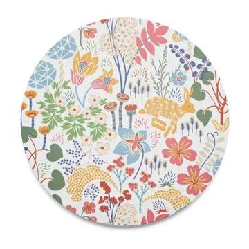Podkładka pod gorące naczynia Lyckeflykt Ø21 cm od Arvidssons textil wykonana jest z MDF i ozdobiona kwiatowym wzorem autorstwa Hanny Werning. Podkładka jest okrągła i stanowi dekoracyjny element nakrytego stołu.