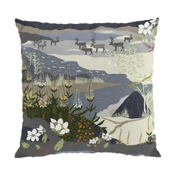 Poszewka na poduszkę Fjällvandring 47x47 cm od Arvidssons Textil ma piękny wzór inspirowany górami, który jest nadrukowany na 100% bawełnie. Poszewka na poduszkę świetnie nadaje się do umieszczenia np. na stołku w przedpokoju lub na kanapie w salonie. Wzór, w tym góry, renifery i kwiaty, został zaprojektowany przez Louise Videlyck.