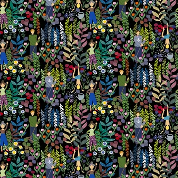 Tkanina z ogrodowym motywem, czarny Arvidssons Textil