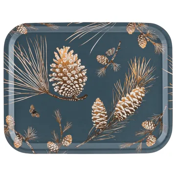 Taca Pine Cone 28x36 cm produkowana w Szwecji dla Åry Home i zdobiona żywym wzorem szyszek zaprojektowanym przez projektanta Sama Pickarda. Piękna i funkcjonalna taca do serwowania, która doskonale nadaje się zarówno na przystawki podczas uroczystej kolacji, jak i na przytulne niedzielne śniadanie. Ręcznie robiona z kilku warstw brzozowej sklejki z certyfikatem FSC i pokryta ochronną warstwą melaminy dla większej trwałości.