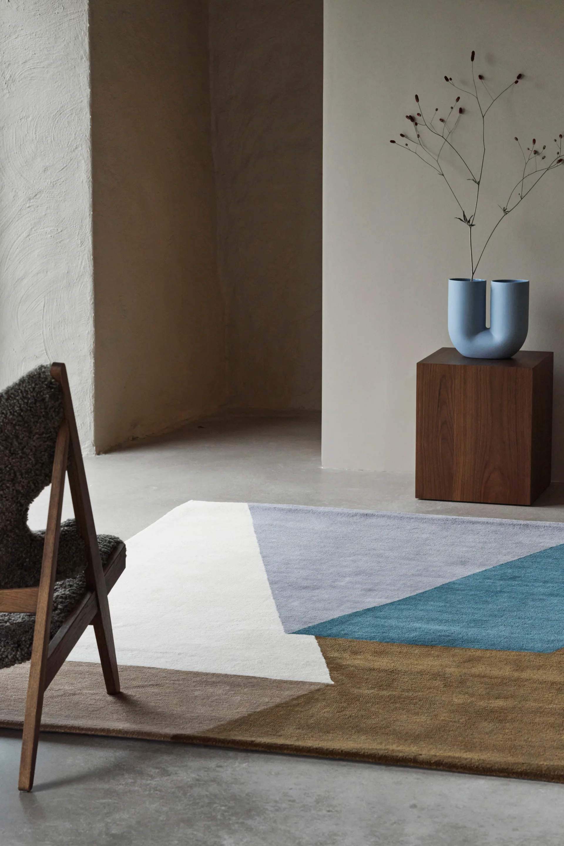 Knitting fotel - Owcza skóra curly root ciemnybrązowy-stojak ciemny dąb - Audo Copenhagen