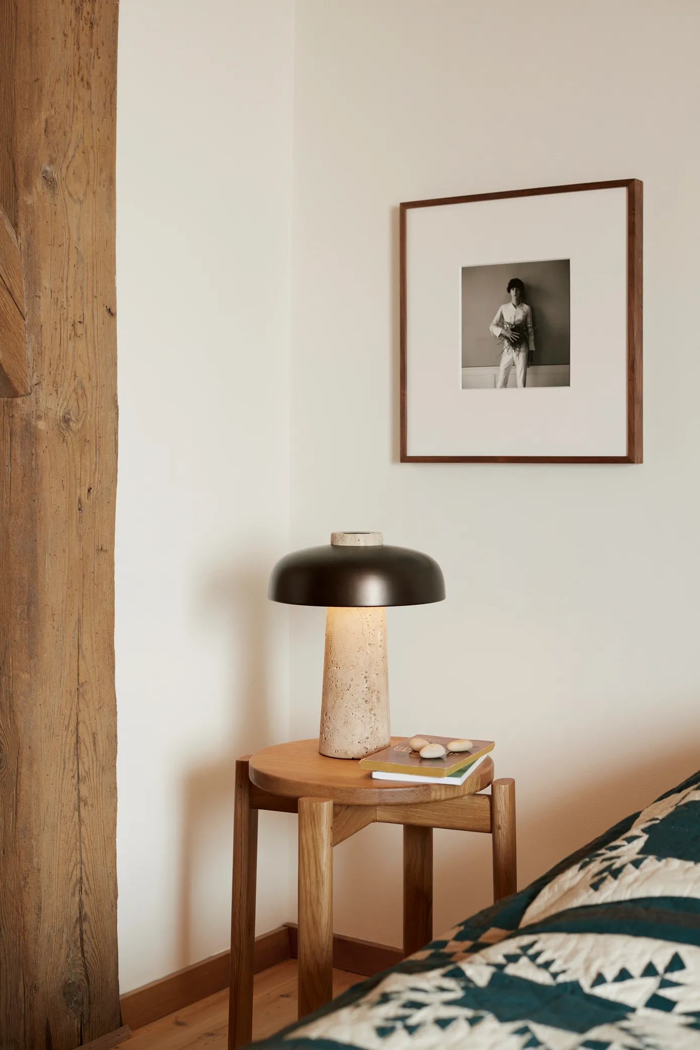 Lampa stołowa Reverse 30 cm od Audo Copenhagen ma zaokrąglony abażur z metalu oraz podstawę z surowego kamienia naturalnego o kształcie przypominającym stożek. Dzięki surowemu materiałowi podstawy powstają efektowne cienie, gdy lampa jest włączona. Dodatkowo kamień ukazuje swoje różnorodne odcienie w fascynujący sposób. Tam, gdzie spotykają się podstawa i abażur, znajduje się ściemniacz, który pozwala regulować intensywność i temperaturę barwową światła jednocześnie, co sprawia, że lampa spełnia wiele różnych potrzeb oświetleniowych – od ciepłego światła na stoliku nocnym po przytłumione światło na komodzie.