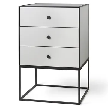 Stolik boczny Frame 49 z trzema szufladami od Audo Copenhagen to elegancki mebel łączący funkcjonalność i estetykę. Stolik boczny składa się z drewnianej skrzyni z ramą i podstawą ze stali lakierowanej. Frame 49 doskonale nadaje się zarówno obok kanapy, jak i jako stolik nocny przy łóżku, a także może być łączony w dłuższy mebel na przykład w salonie lub w przedpokoju. Do wyboru różne kolory.
