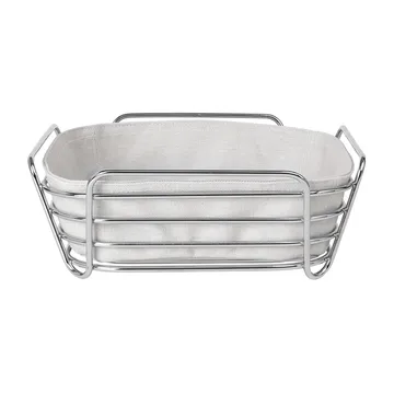 Koszyk na chleb Delara 25x25 cm od blomus jest wykonany ze stali nierdzewnej i miękkiego tekstylnego materiału w pięknym i zachęcającym designie. Koszyk na chleb będzie pięknym elementem na tacy śniadaniowej lub na stole obiadowym do serwowania chleba i łatwo go dopasować do różnych porcelan, obrusów i serwetek.