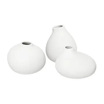 Zestaw wazonów Nona 3 szt. od niemieckiej firmy blomus składa się z trzech wazonów w różnych kształtach. Wazony mają zaokrąglone formy z matowym wykończeniem i prezentują się równie dobrze razem, jak i osobno. Umieść je na półce, komodzie lub na stole w salonie.
