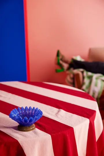 Lori miska S Ø14 cm od ByOn to ręcznie wykonane dzieło z dmuchanego szkła. Zainspirowana plisowanymi spódnicami i pąkami kwiatów gotowymi do rozkwitu, ta miska ma unikalną formę i szkliwione kolory. Okrągła, niska podstawa tworzy kontrast, który sprawia, że Lori jest niezapomnianym elementem wystroju. Idealna do świeczek, biżuterii lub orzechów.