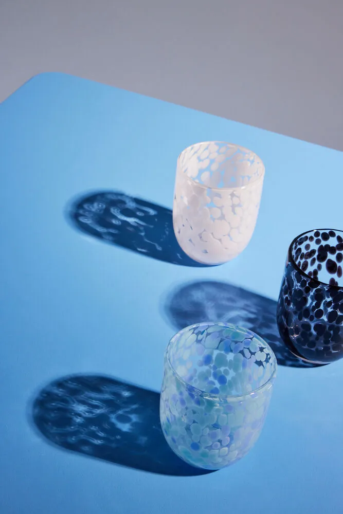 Szklanki Messy 30 cl 2 szt. od Byon są wykonane z ręcznie dmuchanego szkła z zabawnym wzorem konfetti. Idealne do serwowania drinków, soku, mleka lub kawy, a także jako świeczniki na tealighty czy kubek na szczoteczki do zębów. Ręcznie wykonane, z unikalnymi różnicami w kolorze i strukturze.
