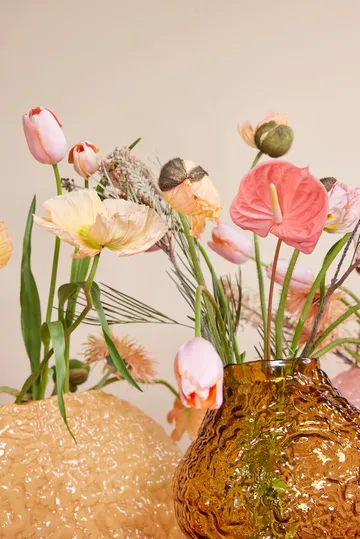 Wazon Corallo L 15x45 cm od Byon jest wykonany z ręcznie dmuchanego szkła o strukturze przypominającej koralowce na dnie morza. Nieregularny, owalny kształt i mleczna powierzchnia czynią go efektownym elementem w węższych przestrzeniach. Każdy wazon jest unikatowy i dostarczany w eleganckim pudełku Byon.