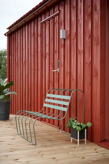 Sofa Gardener od Design House Stockholm, zaprojektowana przez Evę Schildt, wykonana jest ze stali nierdzewnej z wykończeniem malowanym proszkowo. Ta solidna, ale lekka sofa łączy w sobie formę i naturę, idealna na wczesne poranki, słońce i spokojne wieczory. Nie wymaga konserwacji i pozwala roślinom i kwiatom na wędrowanie wokół jej struktury przypominającej siatkę. Od momentu wprowadzenia na rynek w 2002 roku, stała się klasykiem designu.