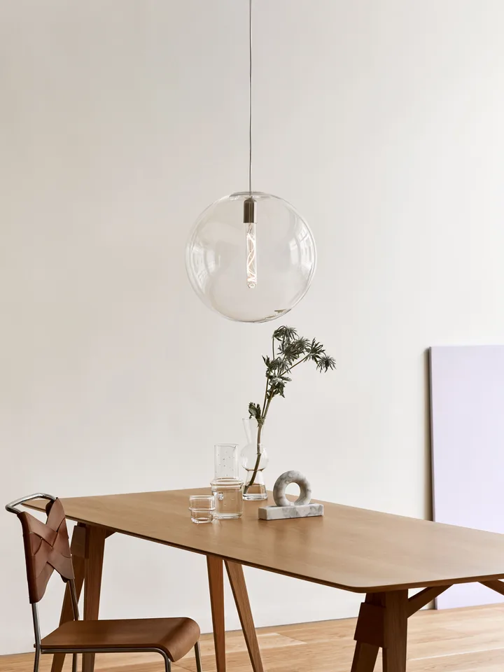 Lampa Luna przezroczysta od Design House Stockholm to lampa sufitowa zaprojektowana przez Alexandra Lervika, która przyciąga uwagę swoim prostym, eleganckim wyrazem. Wykonana z dmuchanego szkła emituje równomierne, nieoślepiające światło bez cieni, tworząc spokojną atmosferę w pomieszczeniu. Dzięki ponadczasowej formie Luna sprawdza się zarówno nad stołem jadalnym, jak i w przedpokoju czy sypialni, podkreślając wystrój bez dominowania. Idealna lampa dla osób poszukujących wysokiej jakości i przemyślanego wzornictwa.