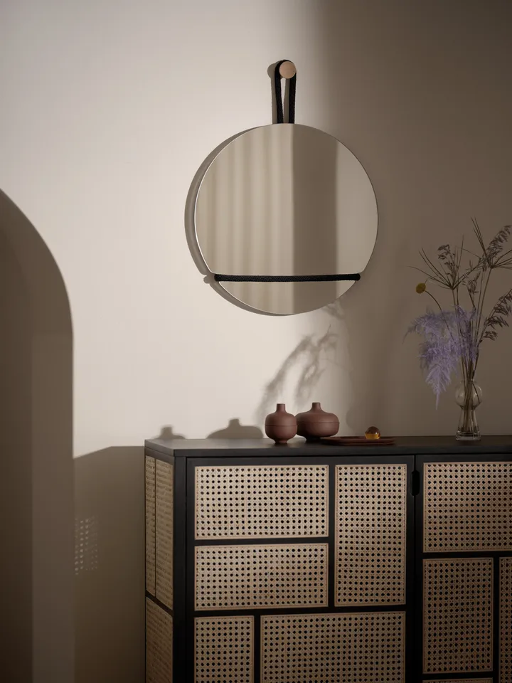 Lustro Lasso okrągłe od Design House Stockholm to eleganckie i oszczędne lustro zaprojektowane przez Axela Bjurströma. Tutaj na pierwszym planie jest szkło — bez ramy powierzchnia staje się dotykowa i wizualnie nacechowana, co nadaje wnętrzu lekkości i artystyczny charakter. Charakterystyczna lina otula szkło i tworzy efektowne, przypominające pętlę zawieszenie, które mocowane jest na dębowym kołku z dyskretnym rozwiązaniem zabezpieczającym. Lasso sprawdza się równie dobrze w przedpokoju, nad komodą czy w sypialni, gdzie odbija światło i staje się pięknym, poetyckim elementem dekoracyjnym.