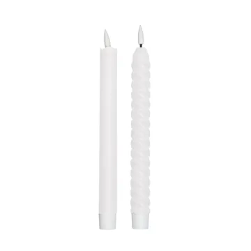 Design Letters LED-świeczki 2 szt. są wykonane z wosku i polipropylenu, aby naśladować wygląd prawdziwych świec. Te przytulne świece występują w dwóch różnych kształtach, jedna jest gładka, a druga skręcona. Doskonały pomysł na prezent na wiele okazji.