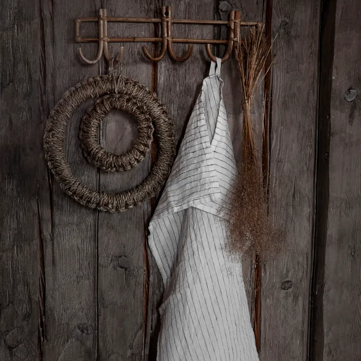 ERNST podstawka natura ma nietypowy design, w którym materiał został skręcony w formę okrągłego wieńca. Jest równie praktyczna, gdy położysz ją na stole na garnki i gorące naczynia, jak i piękna, gdy powiesisz ją jako dekoracyjny element w kuchni.