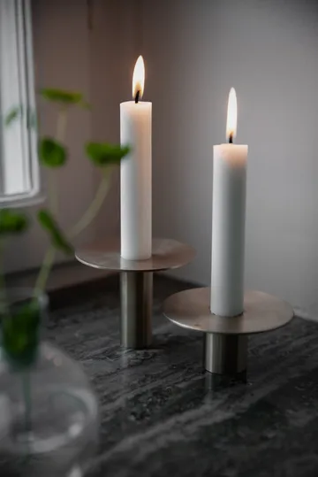 Świecznik Ernst mosiądz szczotkowany Ø9,2 cm od ERNST to elegancki, niski świecznik na świeczki stołowe, który daje ciepłe i przytulne światło. Zaprojektowany z myślą o prostocie, sprawdzi się zarówno na stole kuchennym, jak i na parapecie oraz w zestawieniu z innymi świecznikami z tej samej serii. Wykonany z mosiądzu i szczotkowany, dzięki czemu ma gładką powierzchnię, która pięknie się postarzeje z upływem czasu. Idealny detal dla osób pragnących stworzyć przyjazną atmosferę w domu.