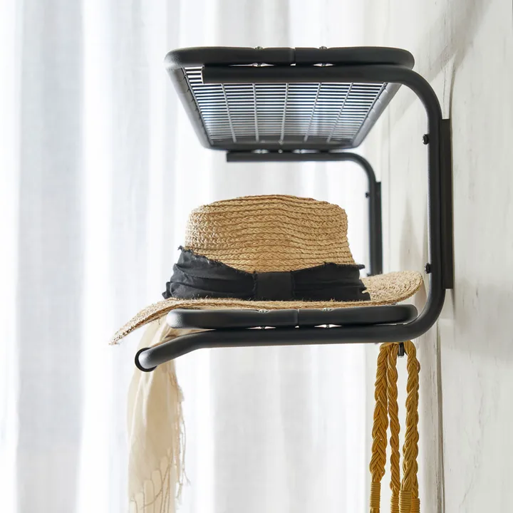 Classic 650 półka na kapelusze od Essem Design, zaprojektowana przez Gunnara Bolina, to ikoniczna półka o zaokrąglonych kształtach z lat 50. XX wieku. Z chromowanymi wspornikami z rury stalowej i półkami z powłoką proszkową łączy styl z funkcjonalnością. Siatka o grubości drutu 2,25 mm i oczkach 30 × 30 mm zapewnia stabilność. Pręt na wieszaki to stal pokryta tworzywem o średnicy 19 mm. Zalecana maksymalna pojemność to dziesięć wieszaków, co czyni ją idealną do uporządkowanego przechowywania w domu.
