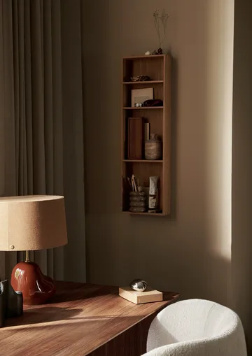 Półka Bon 36x47 cm od duńskiej Ferm Living to długa, wąska półka z pięknie widocznymi spoinami w rogach. Półka z dębu może być używana zarówno jako stojąca półka ścienna, jak i leżąca półka, idealna dla tych, którzy chcą wyeksponować swoje piękne rzeczy.