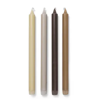 Pure candles 4-pak od duńskiej Ferm Living składa się z czterech świec w różnych ziemistych tonach. Umieść świece w swoim ulubionym świeczniku na stole, aby uzyskać dodatkowy nastrojowy efekt.