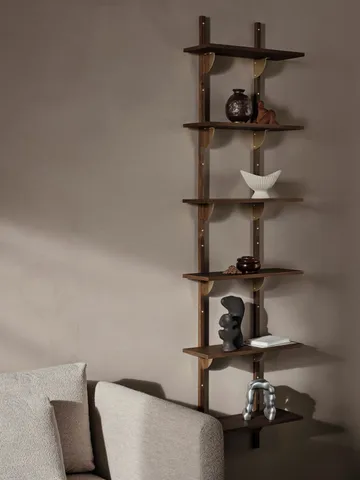 Sector półka triple narrow od Ferm Living jest wykonana z forniru dębowego, MDF, dębu i mosiądzu. Ta półka jest reinterpretacją klasycznych regałów z połowy XX wieku, łącząc surową prostotę z połączeniem drewna i mosiądzu. Idealna do eksponowania ulubionych przedmiotów w salonie lub przechowywania słoików w kuchni.