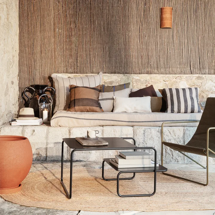 Stolik kawowy Level 60x79 cm z duńskiej Ferm Living to mały stolik wykonany z malowanej proszkowo stali, który można używać zarówno w pomieszczeniach, jak i na zewnątrz. Stolik ma industrialny styl, który efektownie łączy miękkie i kanciaste formy, i ma ponadto dwa praktyczne blaty. Zbierz kilka wybranych książek lub czasopism na dolnym blacie i umieść wazon lub lampę na górnym, lub pozostaw stolik jako wolną powierzchnię do odstawienia rzeczy. Level to idealny stolik kawowy do uzupełnienia zarówno kompletu wypoczynkowego na tarasie, jak i mebli w salonie.