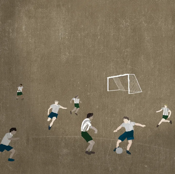 Plakat Football 50x70 cm od Fine Little Day to offsetowy wydruk oryginalnego obrazu akrylowego i kredowego autorstwa Elisabeth Dunker. Zabawy plakat przedstawiający trwający mecz piłki nożnej będzie ciekawym elementem w domu miłośnika piłki nożnej.
