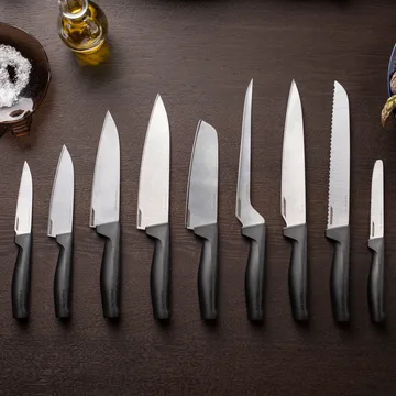 Nóż do chleba Hard Edge 22 cm od Fiskars dobrze leży w dłoni i jest wykonany z grubego nierdzewnego stali. Nóż został wyprodukowany z rewolucyjną technologią LZR-EDGE ™, która utrzymuje ostrze ostre nawet do czterech razy dłużej niż zwykłe noże. Rękojeść ma ergonomiczną konstrukcję z trójwymiarowym wzorem, który zapewnia doskonały uchwyt.