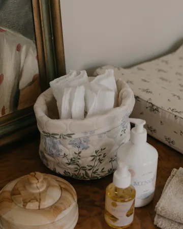 Plumbago Satin quiltad kosz 2 sztuki od Garbo&Friends łączy funkcję i elegancję dzięki satynie z ekologicznej bawełny. Te pikowane kosze do przechowywania są idealne na zabawki, koce lub inne drobne przedmioty. Zestaw zawiera dwa kosze dla praktycznego i stylowego organizowania.