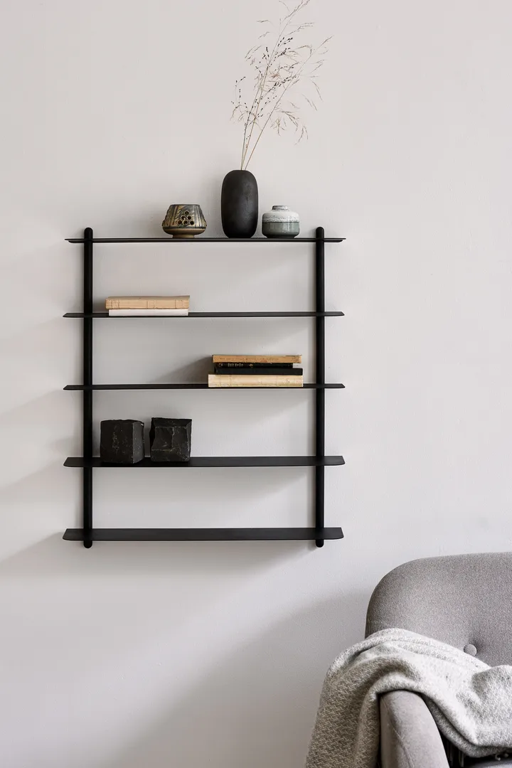 Półka Nivo E od duńskiej marki Gejst to minimalistyczna półka ścienna o pięciu poziomach zaprojektowana przez Böttcher & Kayser, którzy przemyśleli zarówno formę, jak i funkcję. Stylowy design półki z czystymi liniami bez widocznych śrub jest elegancki i praktyczny do zawieszenia na przykład w salonie lub w sypialni, a jej duży rozmiar sprawia, że można na niej pomieścić wiele rzeczy.