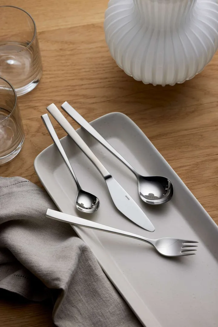Sztućce Fuga pasują zarówno na co dzień, jak i na specjalne okazje, a dzięki klasycznemu designowi i miękko zaokrąglonym liniom wygodnie leżą w dłoni. Projekt wyraża klarowność i precyzję, co sprawia, że te sztućce są idealnym prezentem!
