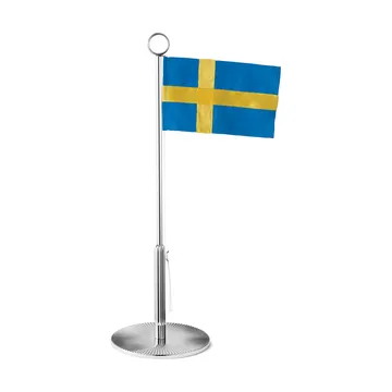 Flaga stołowa Bernadotte 38,8 cm ma metalową podstawę i flagę z tkaniny. Flagę można podnosić i opuszczać wzdłuż metalowego masztu za pomocą sznurka. Flaga stołowa jest idealna na urodziny.