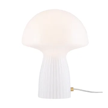 Lampa stołowa Fungo Special Edition Biała od Globen Lighting to elegancka lampa stołowa z leśną inspiracją, co ujawnia się w jej grzybowej formie. Wykonana z białego malowanego szkła z żłobionymi detalami, ta lampa ma unikalny design z widocznymi pęcherzykami powietrza w szkle. Każdy egzemplarz jest dmuchany ustnie, co nadaje każdej lampie jej własny, unikalny wygląd z możliwymi wariacjami w kolorze i grubości szkła. Idealna dla tych, którzy szukają czegoś autentycznego i osobistego do domu.