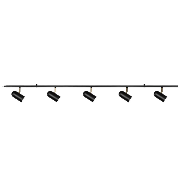 Plafon Swan 5 od Globen Lighting może być stosowany zarówno jako lampa sufitowa, jak i ścienna, na przykład w korytarzu, przy garderobie lub gdziekolwiek potrzebujesz skierowanego światła. Pięć delikatnych kloszy na metalowej szynie jest regulowanych zarówno na boki, jak i w pionie, dzięki czemu lampa nie tylko wygląda atrakcyjnie, ale jest również bardzo funkcjonalna, gdyż można skierować światło w różne strony w razie potrzeby. Minimalistyczny design został zaprojektowany przez Malin Lundmark.