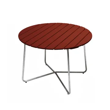 Stół 9A, Ciemnoczerwony lakierowany dąb–ciepłocynkowana podstawa Ø100 cm Grythyttan Stålmöbler