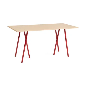 Loop Stand stół matbord 92,5x200 cm od HAY zaprojektowany przez Leifa Jørgensena łączy prostokątny blat z unikalnymi trzy nogami wspornikami. To nadaje mu charakterystycznego graficznego wyrazu. Stół jest oferowany w różnych rozmiarach, materiałach i kolorach, co sprawia, że pasuje do wielu różnych środowisk.