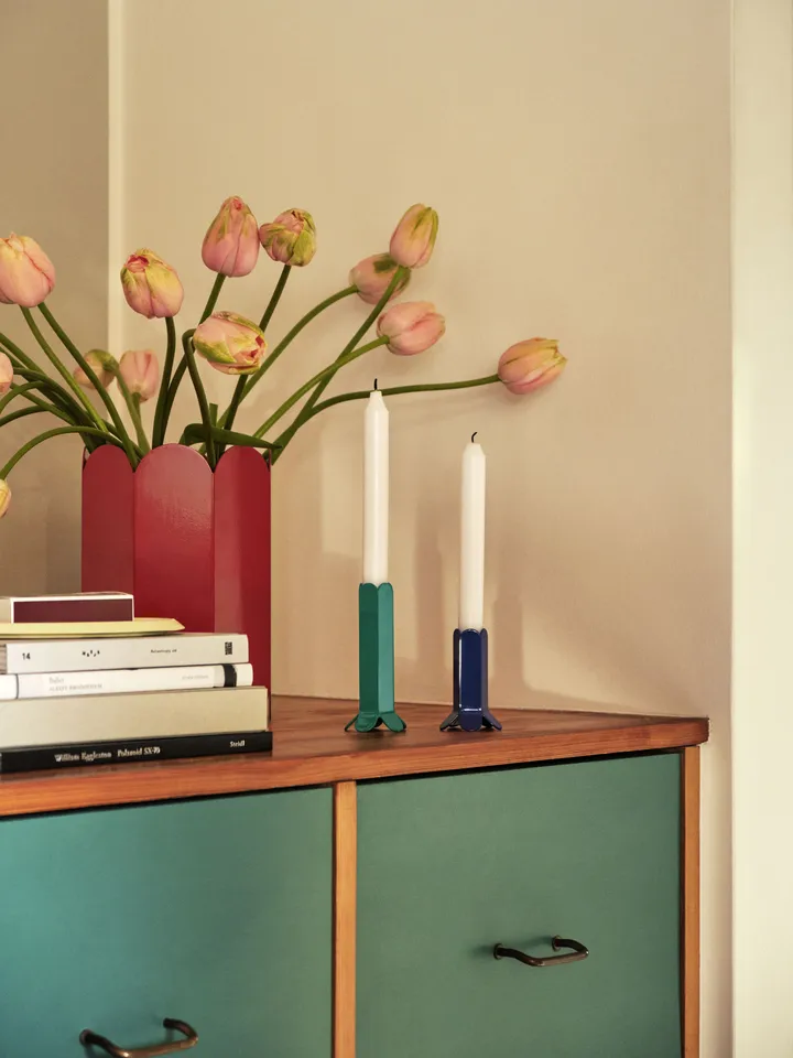Świecznik Arcs 9 cm od HAY został zaprojektowany przez belgijski duet Muller Van Severen i oferuje prostą, rzeźbiarską obecność w Twoim domu. Pionowy łańcuch łuków otula świecę, tworząc oszczędną sylwetkę, która wygląda równie dobrze na stole jadalnym, co na parapecie. Wykonany z aluminium i stali, świecznik sprawia wrażenie solidnego i ponadczasowego, podnosząc stylizacje stołu oraz wieczory przy żywym ogniu. Idealny detal dla osób, które chcą designu widocznego i wyczuwalnego.