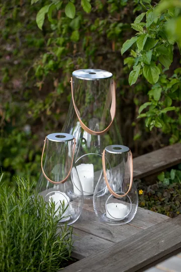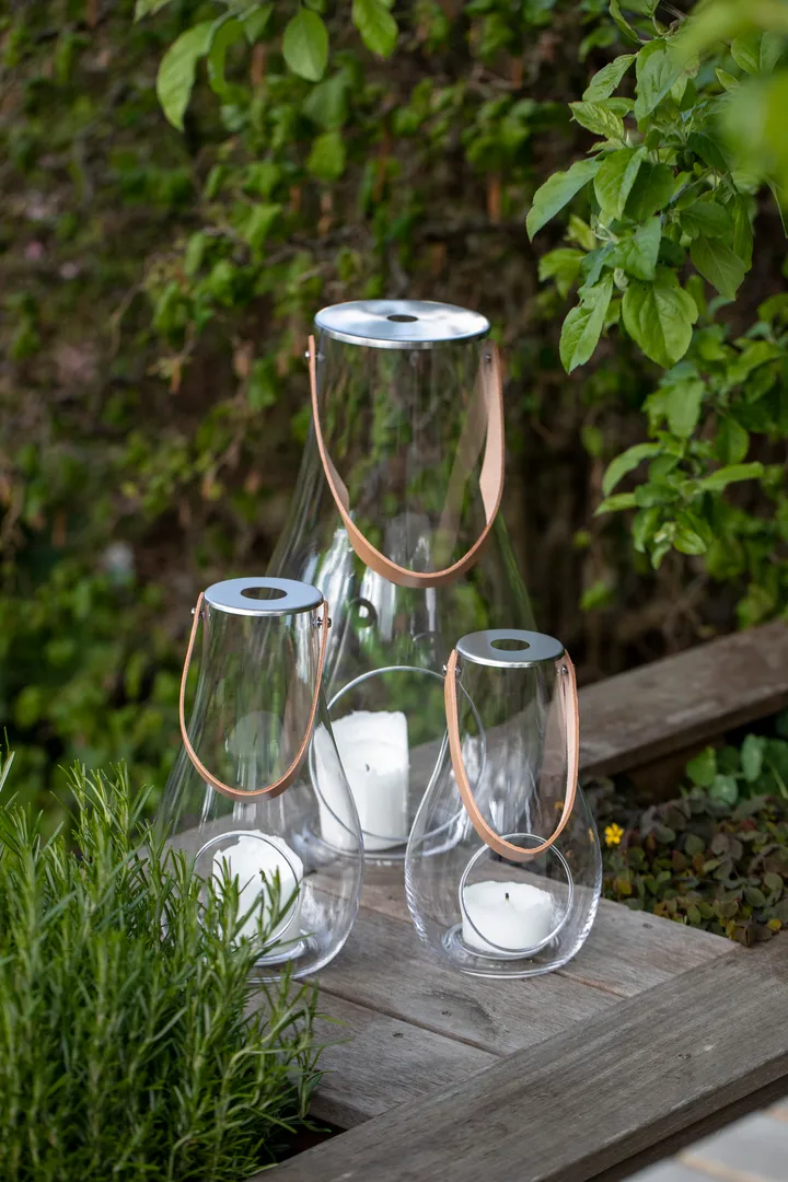 Projektantka Maria Berntsen znalazła inspirację do lampionu Design With Light z butelki - zarówno w charakterystycznym kształcie butelki, jak i w idei małych i dużych butelek pięknie ustawionych razem w grupie. Lampion jest dostępny w trzech różnych rozmiarach, które są starannie dobrane do siebie i doskonale nadają się do ustawienia na podłodze, tarasie lub stole w ogrodzie.