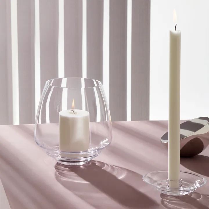 Piękny świecznik Flow od Holmegaard jest wykonany z tłoczonego, przezroczystego szkła najwyższej jakości. Szklany świecznik został zaprojektowany przez Marion Fortat, a inspiracją do projektu były pierścienie tworzące się na powierzchni wody, gdy trafia w nią kamień. Piękne kształty tworzą efekt optyczny, gdy światło pada na pofalowane szkło. Połączcie go chętnie z pozostałymi produktami z serii Flow.