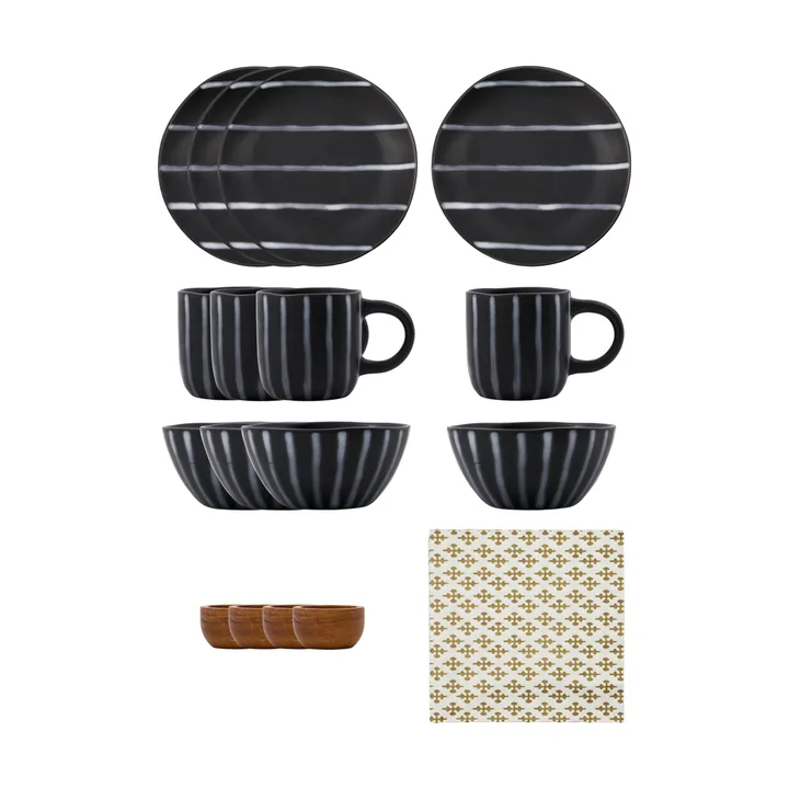 Zestaw obiadowy Line 16 części - Czarno-brązowy - House Doctor