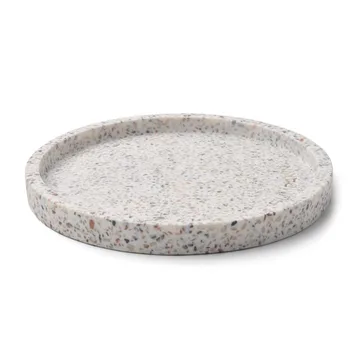 Okrągła taca Humdakin Terrazzo Ø20 cm będzie pięknym detalem zarówno w kuchni, jak i w łazience, ale może również służyć jako dekoracyjna taca na stole jadalnym. Jest elegancka, klasyczna i dodaje pomieszczeniu luksusowy charakter. Terrazzo to sztuczny kamień wytwarzany z pokruszonego marmuru lub innych skał. Połącz tę tacę z innymi elementami z serii Humdakin Terrazzo, aby uzyskać jednolity efekt.