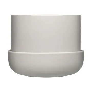 Nappula doniczka z podstawką Ø17 cm w13 cm z fińskiej firmy Iittala to cylindryczna doniczka wykonana z ceramiki na delikatnej podstawce, która zapewnia piękną bazę zarówno dla zielonych roślin, jak i kolorowych aranżacji kwiatowych. Inspirację do serii projektant Matti Klenell znalazł podczas pracy w muzeum szkła Nuutajärvi, gdzie zobaczył stół z dużymi, zaokrąglonymi nogami. Koniecznie zapoznaj się ze świecznikami i innymi doniczkami z serii Nappula, aby stworzyć spójny wygląd w swoim domu.