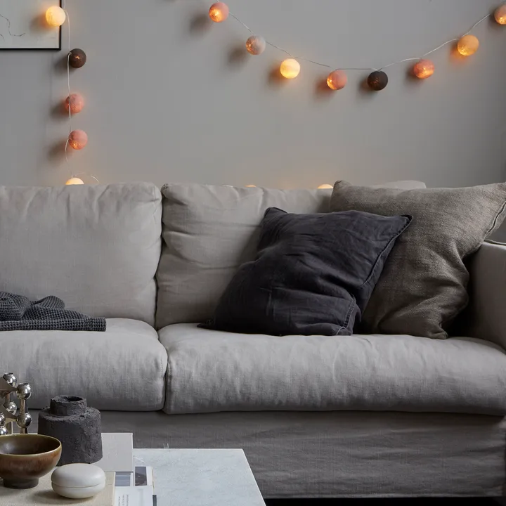 Rozświetl swoje pomieszczenia stylowym girlandem świetlnym Irislights Blush od szwedzkiej marki Irislights. Girlanda składa się z ręcznie robionych kul z bawełny i poliestru z plastikowym przewodem. Kule emitują przyjemne światło, gdy girlanda jest włączona i mogą być umieszczone na wiele różnych sposobów, aby stworzyć różnorodność! Wybierz spośród różnych wariantów.